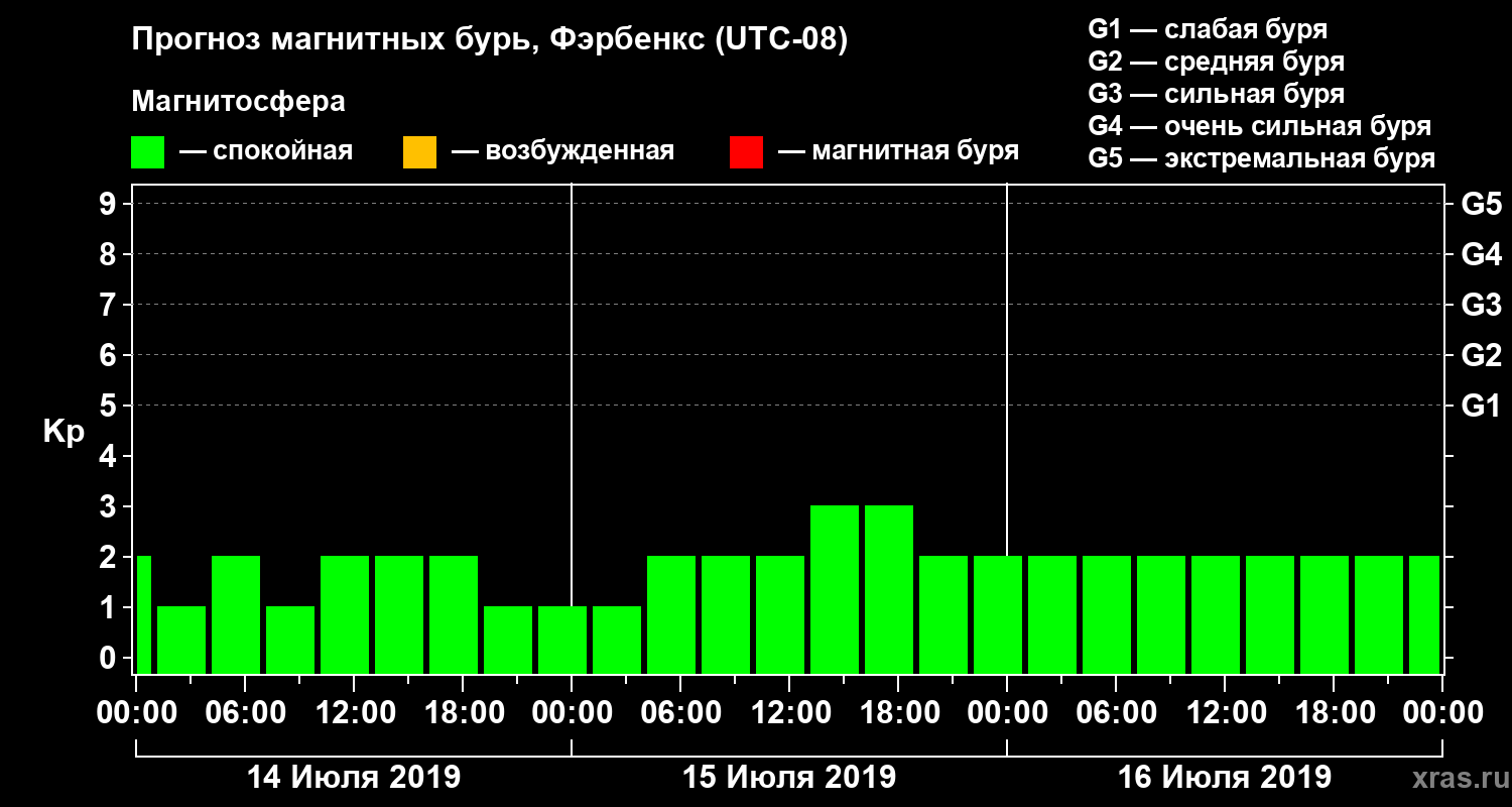 Прогноз магнитных бурь в Фэрбенксе — 14 июля 2019 года