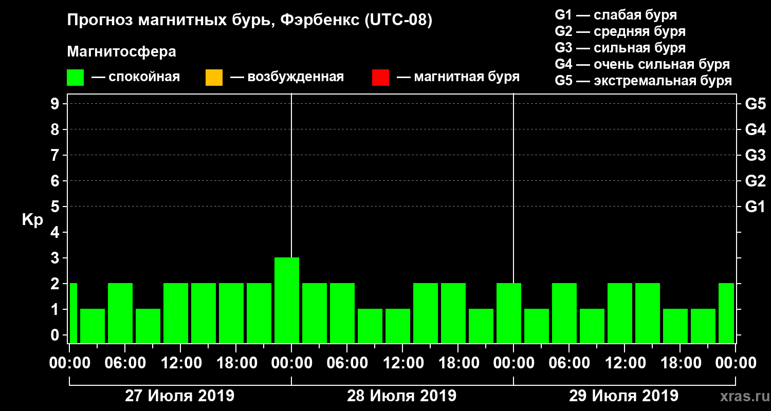 Прогноз магнитных бурь в Фэрбенксе — 27 июля 2019 года