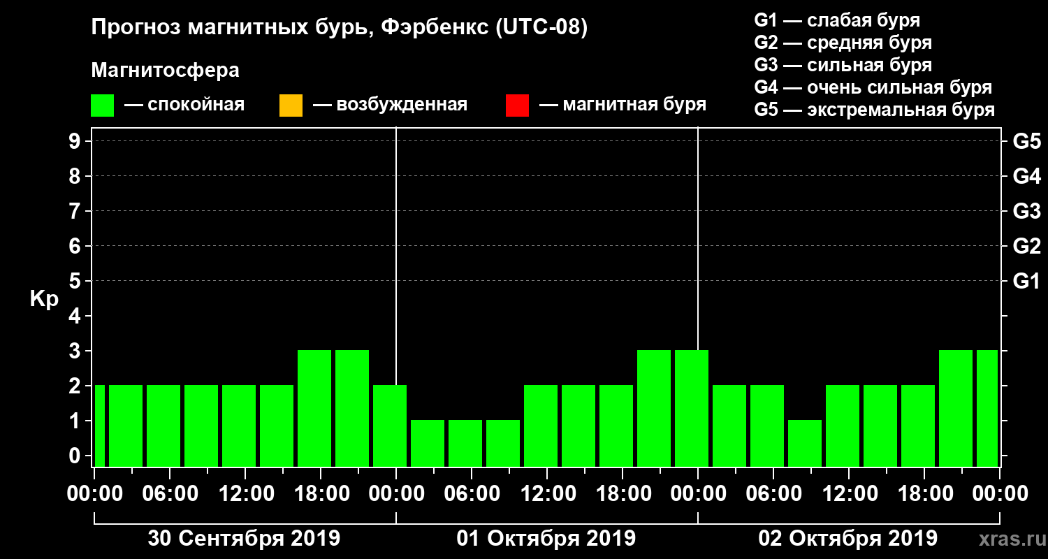 Прогноз магнитных бурь в Фэрбенксе — 30 сентября 2019 года