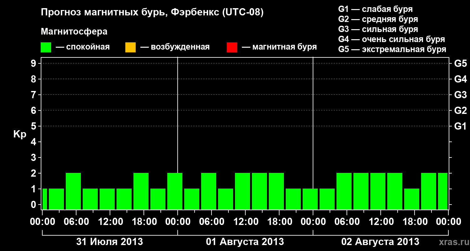 Прогноз магнитных бурь в Фэрбенксе — 31 июля 2013 года