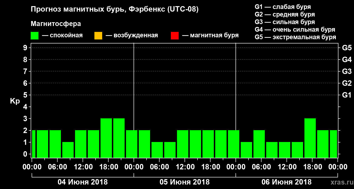 Прогноз магнитных бурь в Фэрбенксе — 4 июня 2018 года
