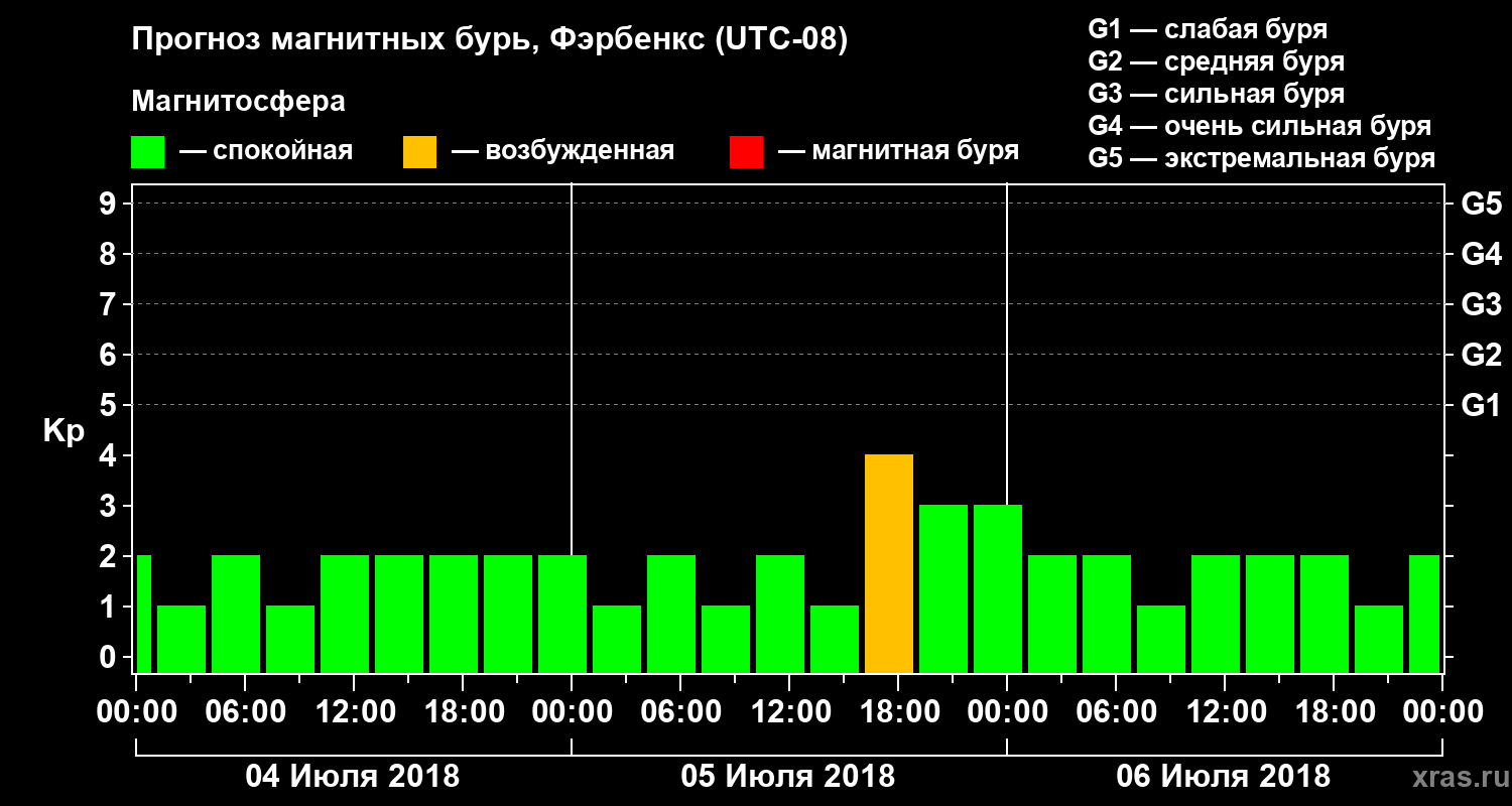 Прогноз магнитных бурь в Фэрбенксе — 4 июля 2018 года
