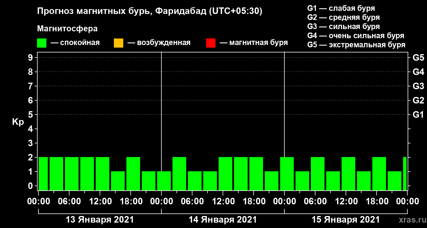 Прогноз магнитных бурь в Фаридабаде — 13 января 2021 года