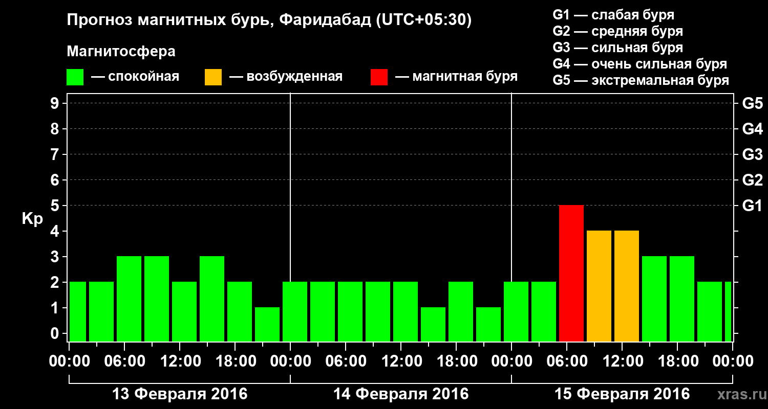 Прогноз магнитных бурь в Фаридабаде — 13 февраля 2016 года
