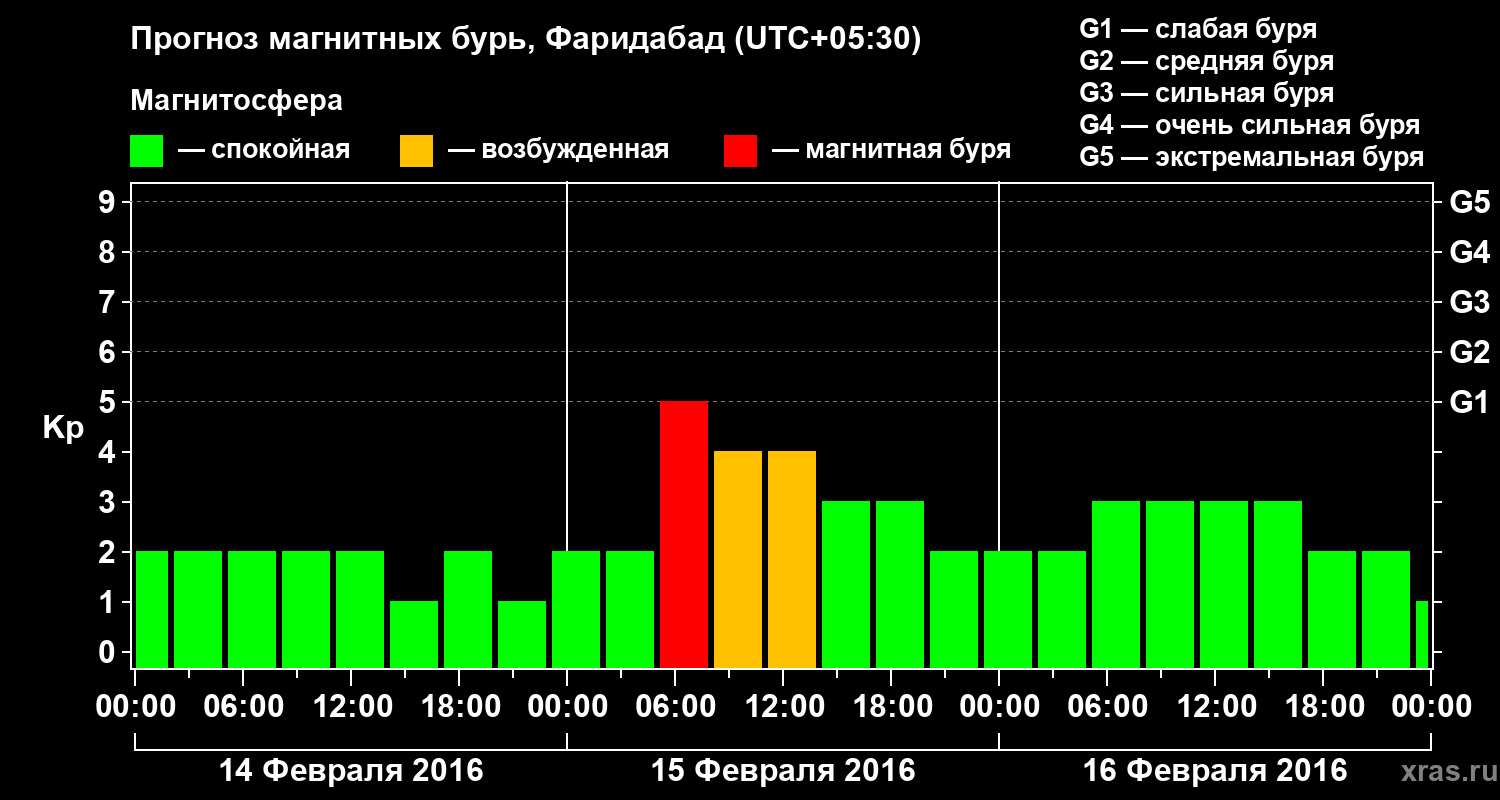 Прогноз магнитных бурь в Фаридабаде — 14 февраля 2016 года