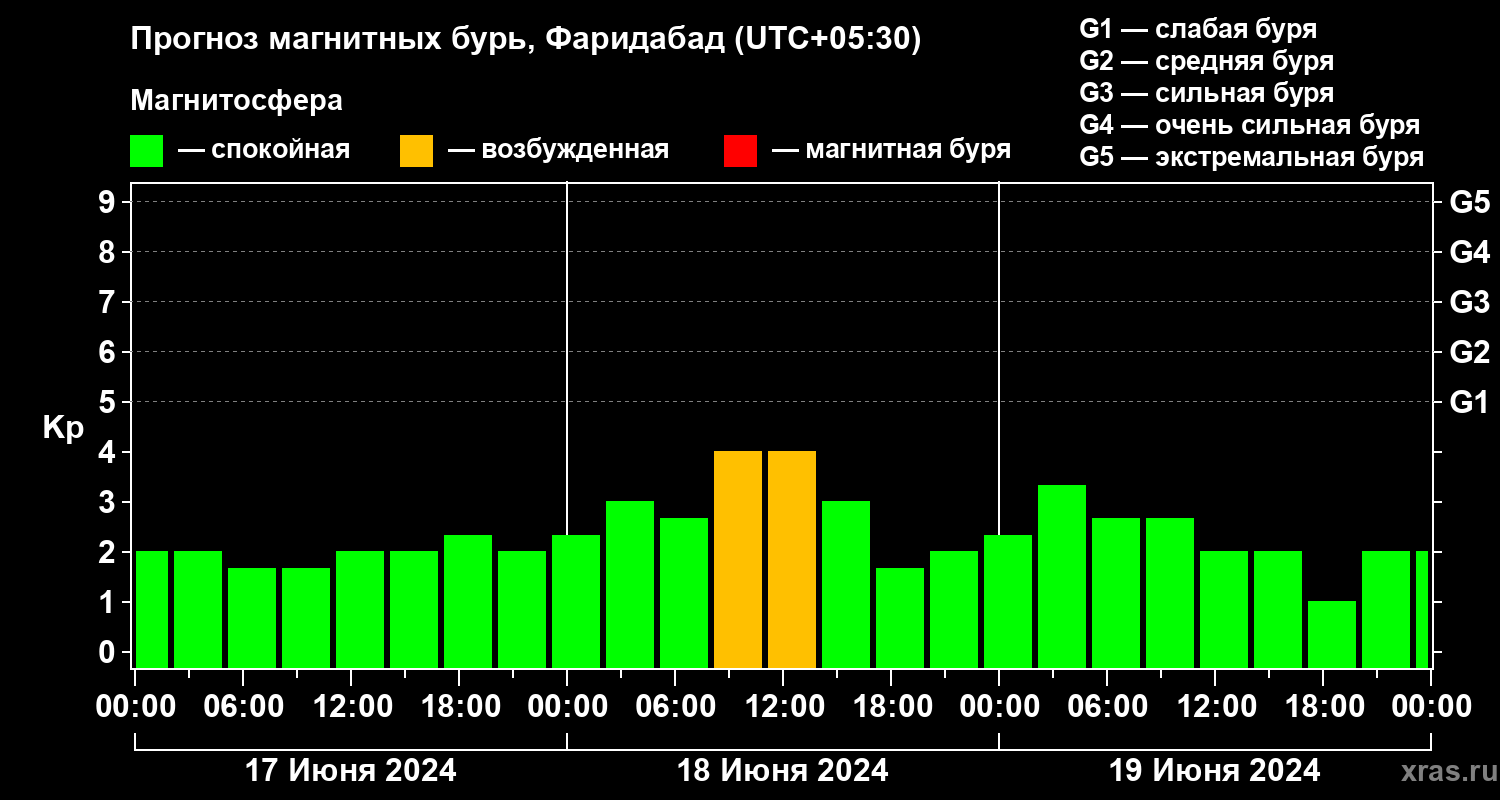 Прогноз магнитных бурь в Фаридабаде — 17 июня 2024 года