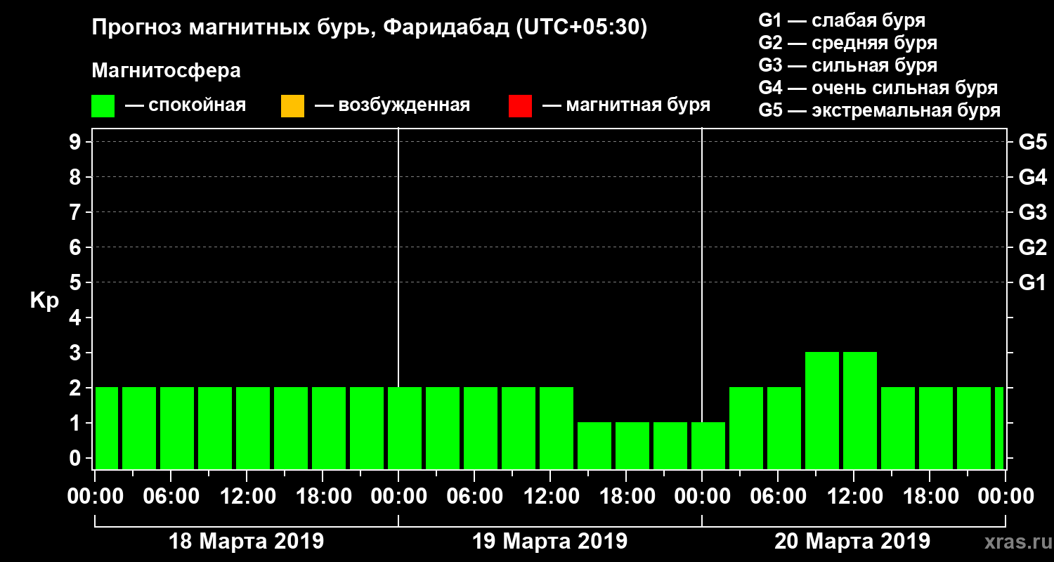 Прогноз магнитных бурь в Фаридабаде — 18 марта 2019 года
