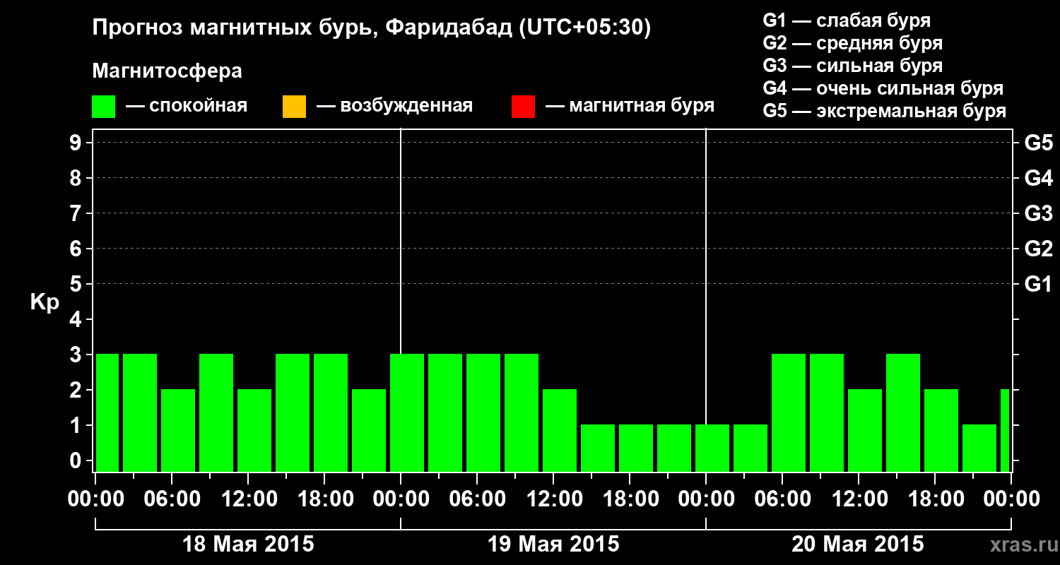 Прогноз магнитных бурь в Фаридабаде — 18 мая 2015 года