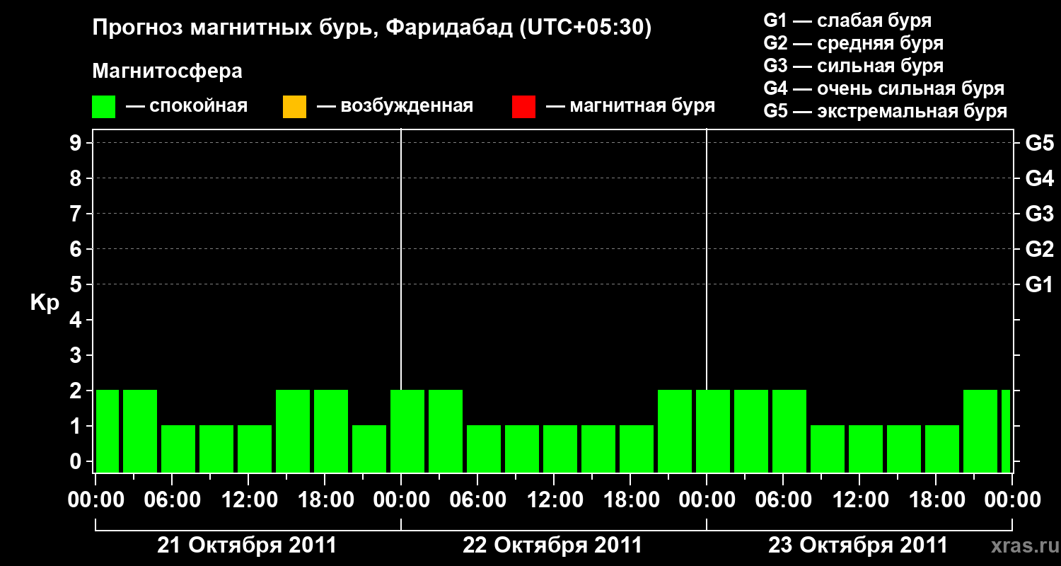 Прогноз магнитных бурь в Фаридабаде — 21 октября 2011 года