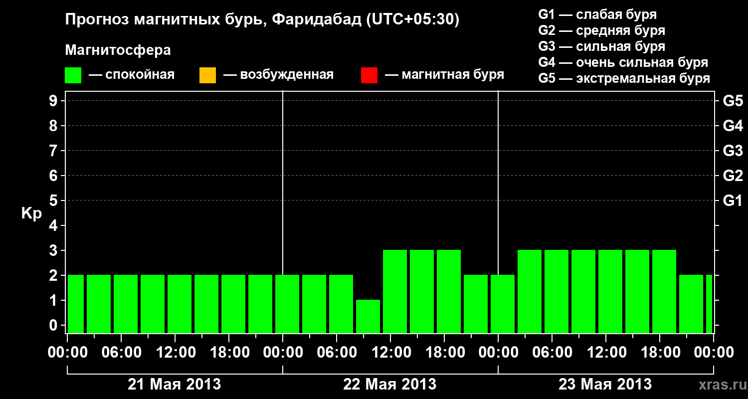 Прогноз магнитных бурь в Фаридабаде — 21 мая 2013 года