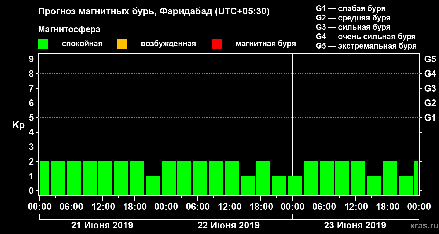 Прогноз магнитных бурь в Фаридабаде — 21 июня 2019 года