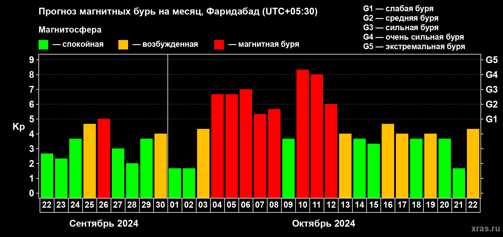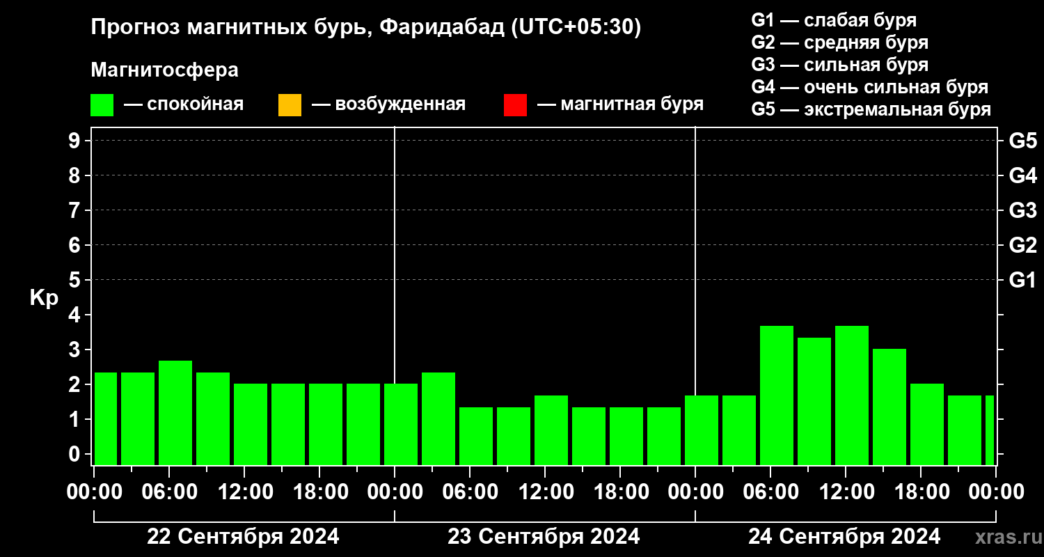 Прогноз магнитных бурь в Фаридабаде — 22 сентября 2024 года