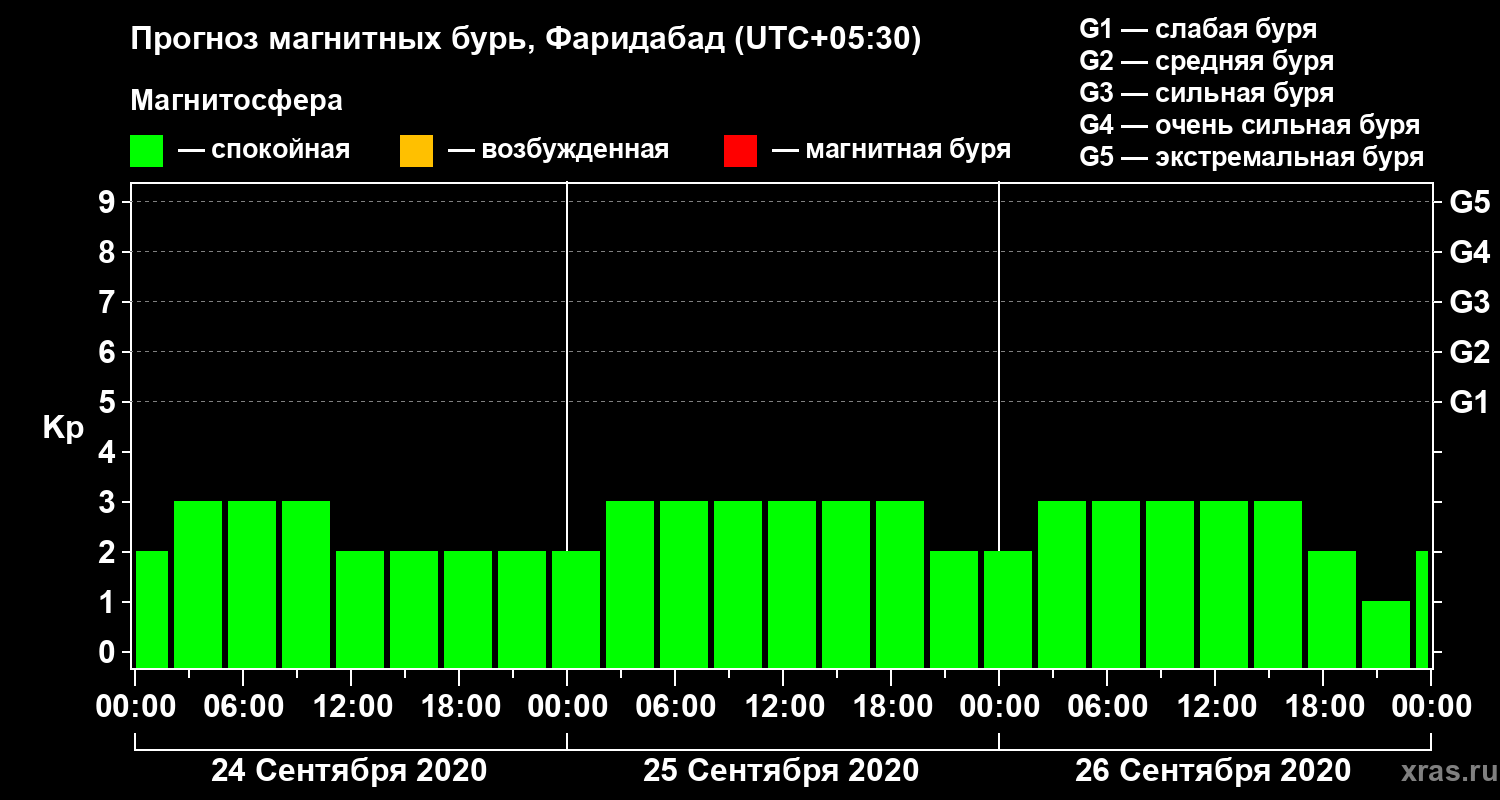 Прогноз магнитных бурь в Фаридабаде — 24 сентября 2020 года