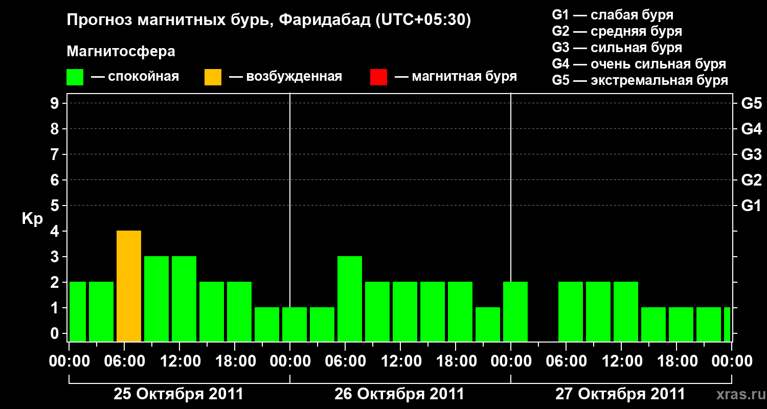 Прогноз магнитных бурь в Фаридабаде — 25 октября 2011 года