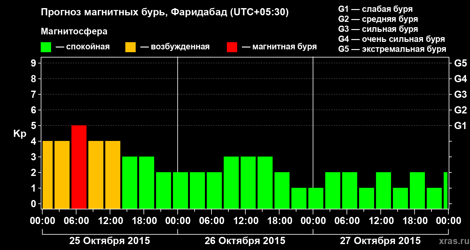 Прогноз магнитных бурь в Фаридабаде — 25 октября 2015 года