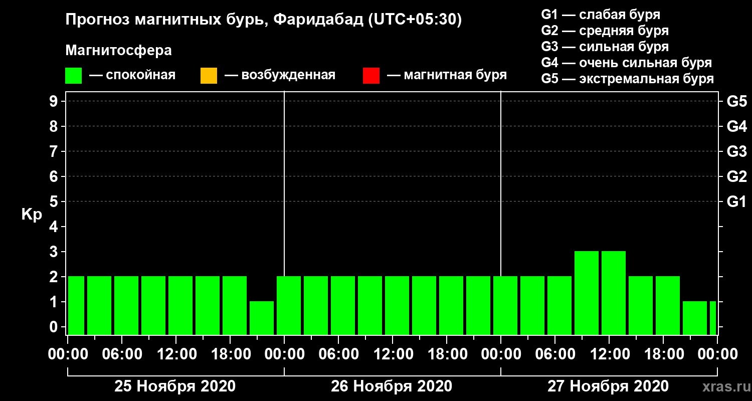 Прогноз магнитных бурь в Фаридабаде — 25 ноября 2020 года