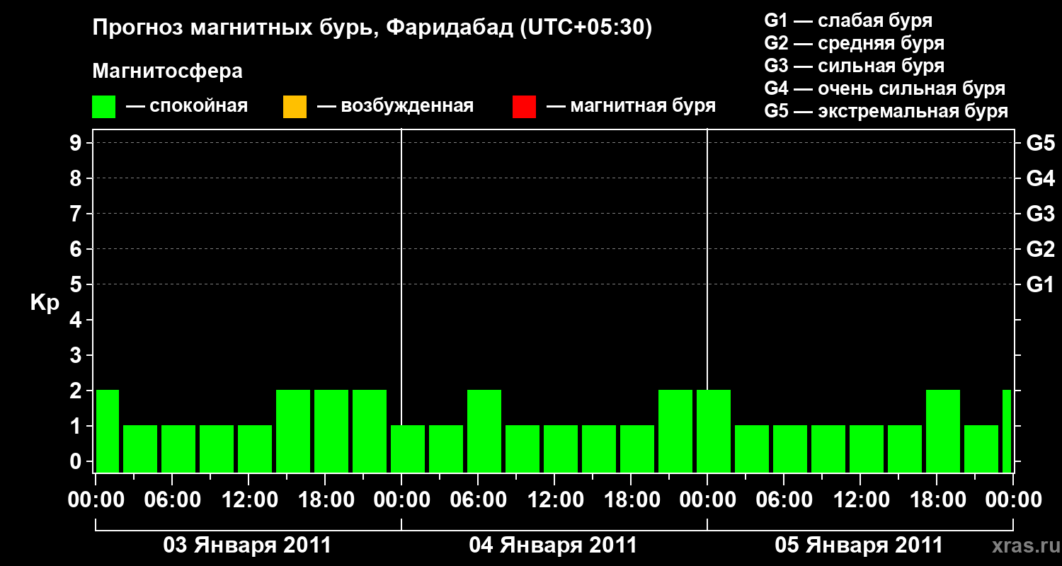 Прогноз магнитных бурь в Фаридабаде — 3 января 2011 года