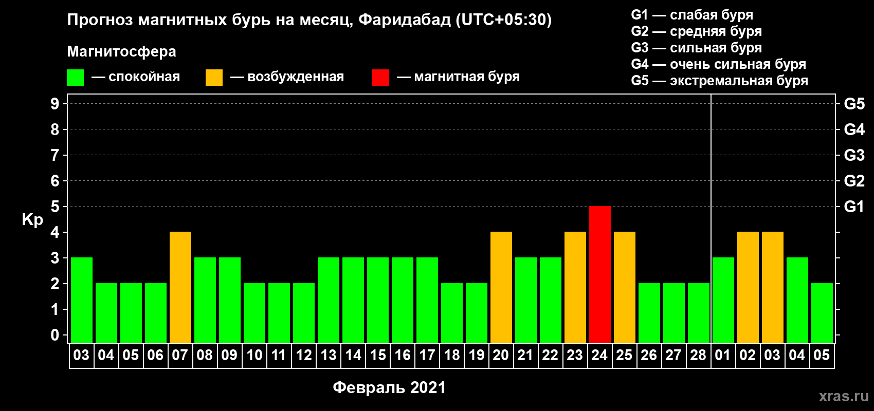 Прогноз магнитных бурь в Фаридабаде — 3 февраля 2021 года