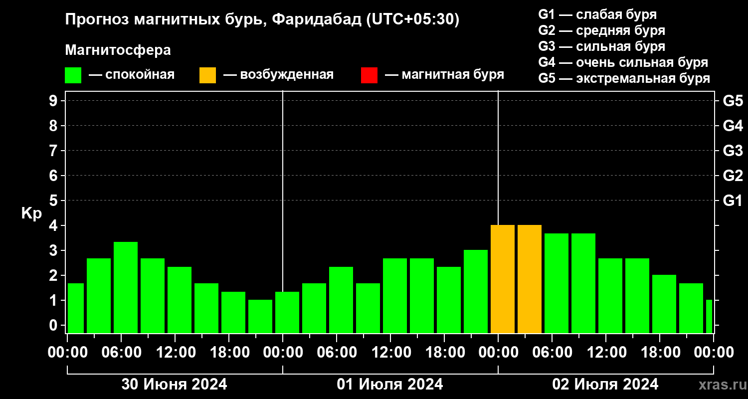 Прогноз магнитных бурь в Фаридабаде — 30 июня 2024 года