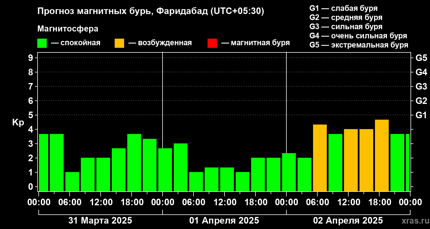 Прогноз магнитных бурь в Фаридабаде — 31 марта 2025 года