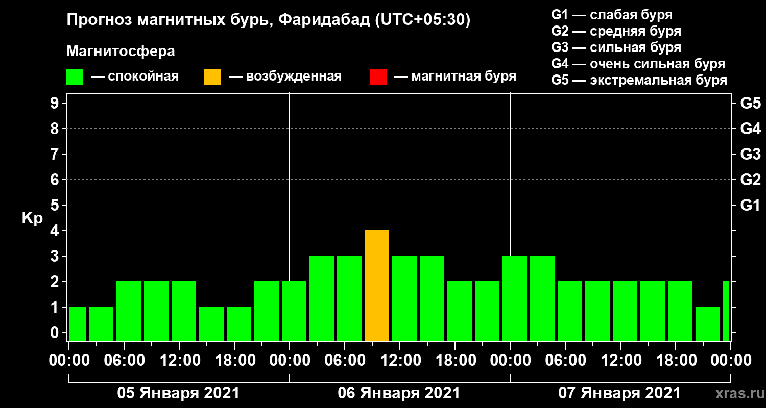 Прогноз магнитных бурь в Фаридабаде — 5 января 2021 года