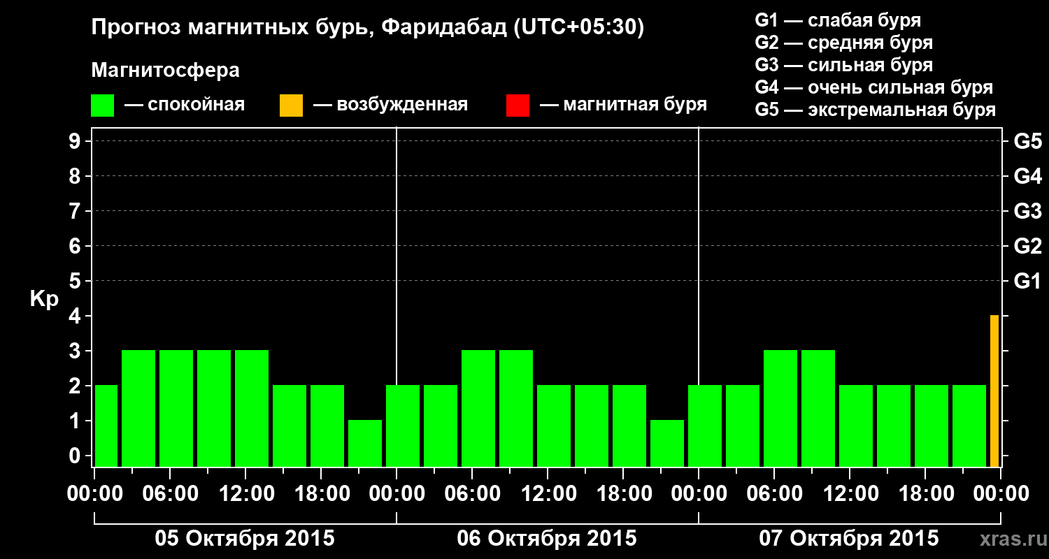 Прогноз магнитных бурь в Фаридабаде — 5 октября 2015 года
