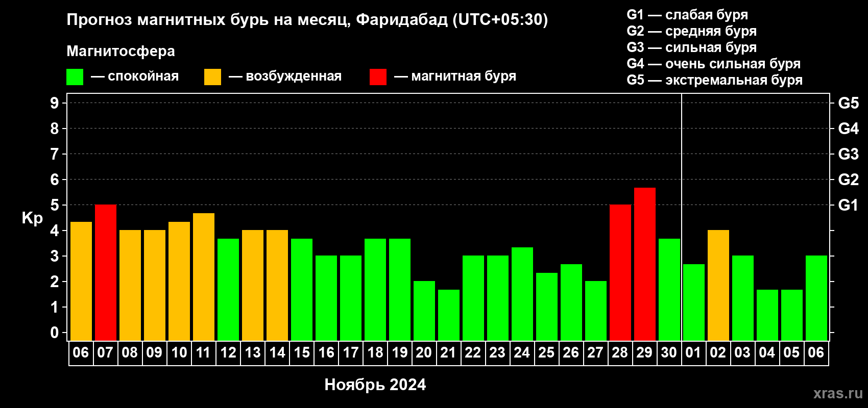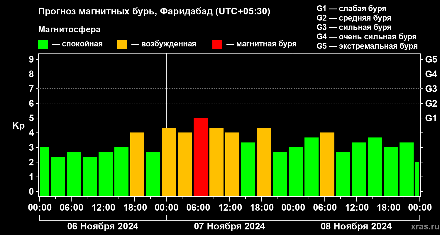 Прогноз магнитных бурь в Фаридабаде — 6 ноября 2024 года