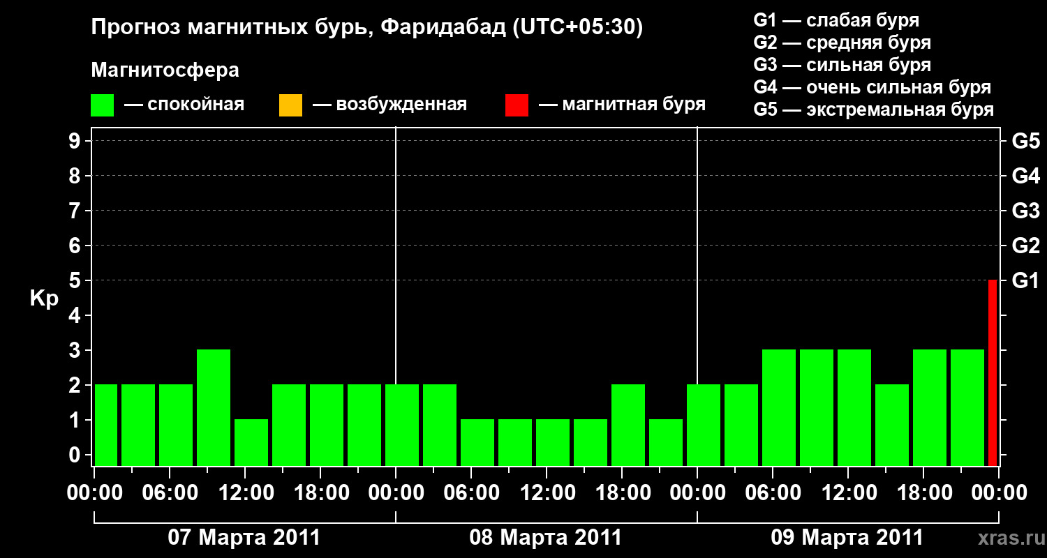 Прогноз магнитных бурь в Фаридабаде — 7 марта 2011 года