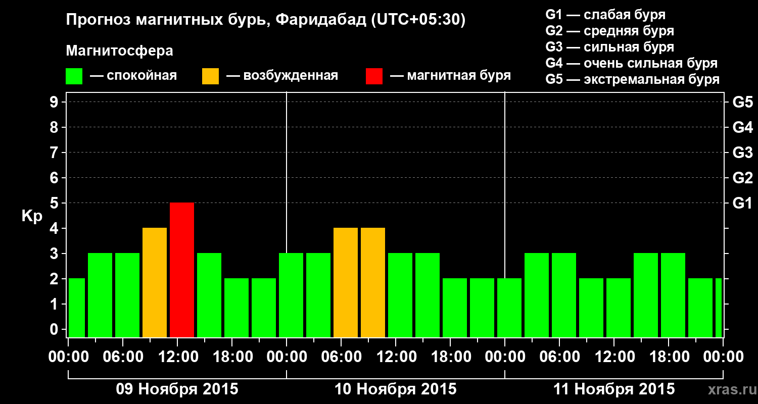 Прогноз магнитных бурь в Фаридабаде — 9 ноября 2015 года