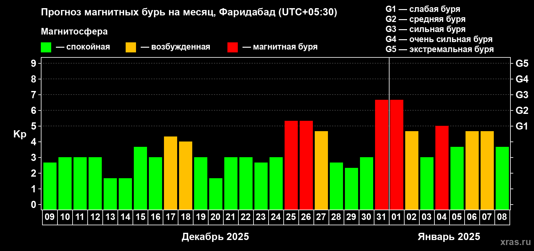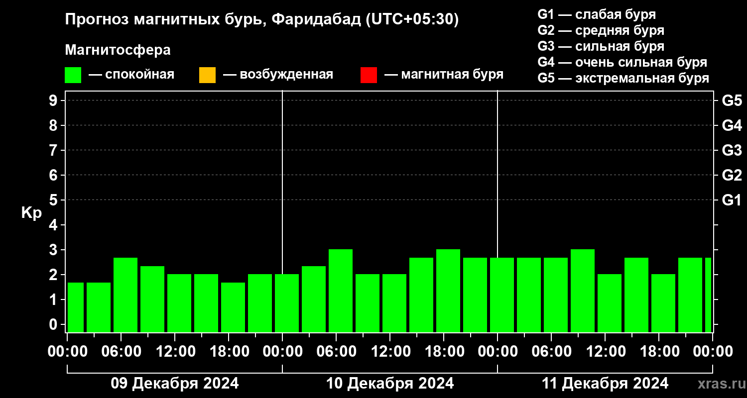 Прогноз магнитных бурь в Фаридабаде — 9 декабря 2024 года