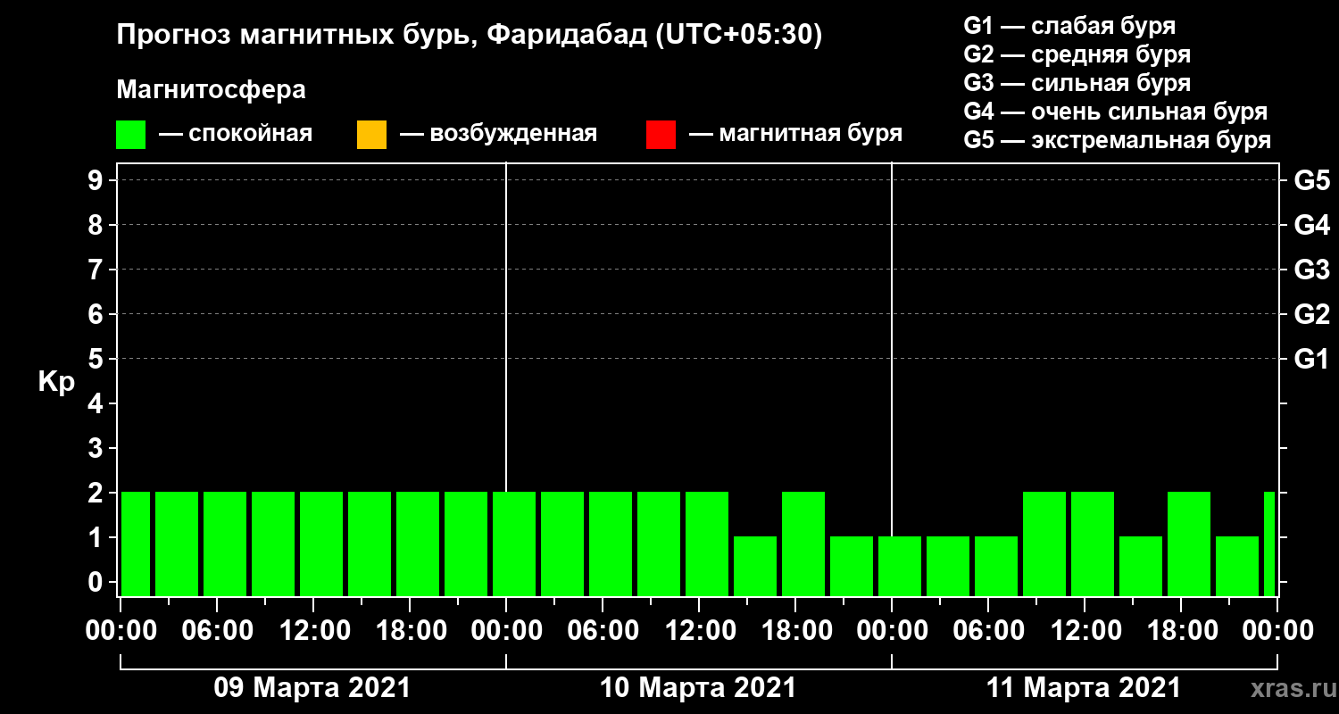 Прогноз магнитных бурь в Фаридабаде — 9 марта 2021 года