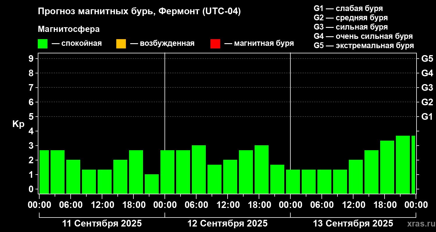 Прогноз магнитных бурь в Фермонте на 11 сентября 2025 года