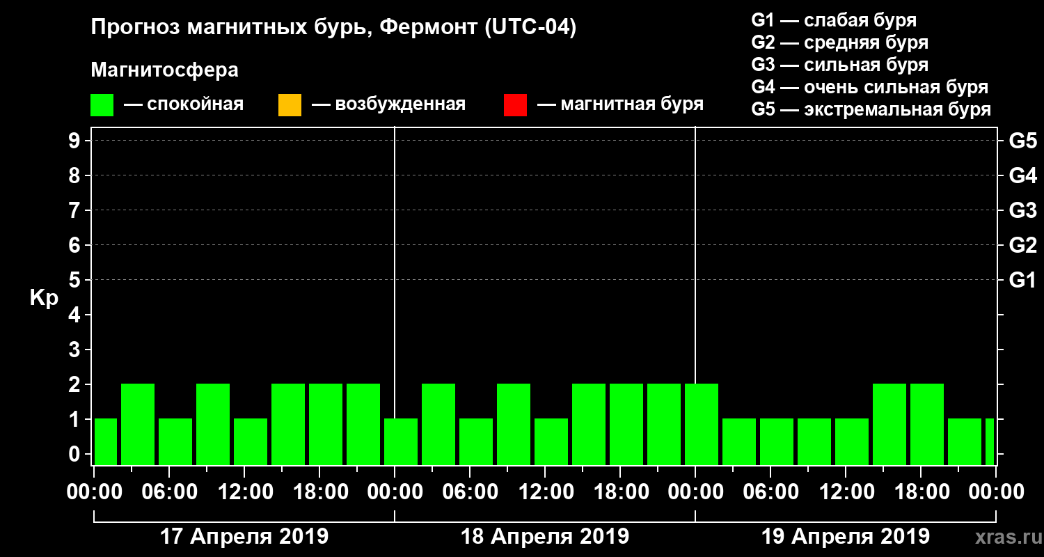 Прогноз магнитных бурь в Фермонте на 17 апреля 2019 года