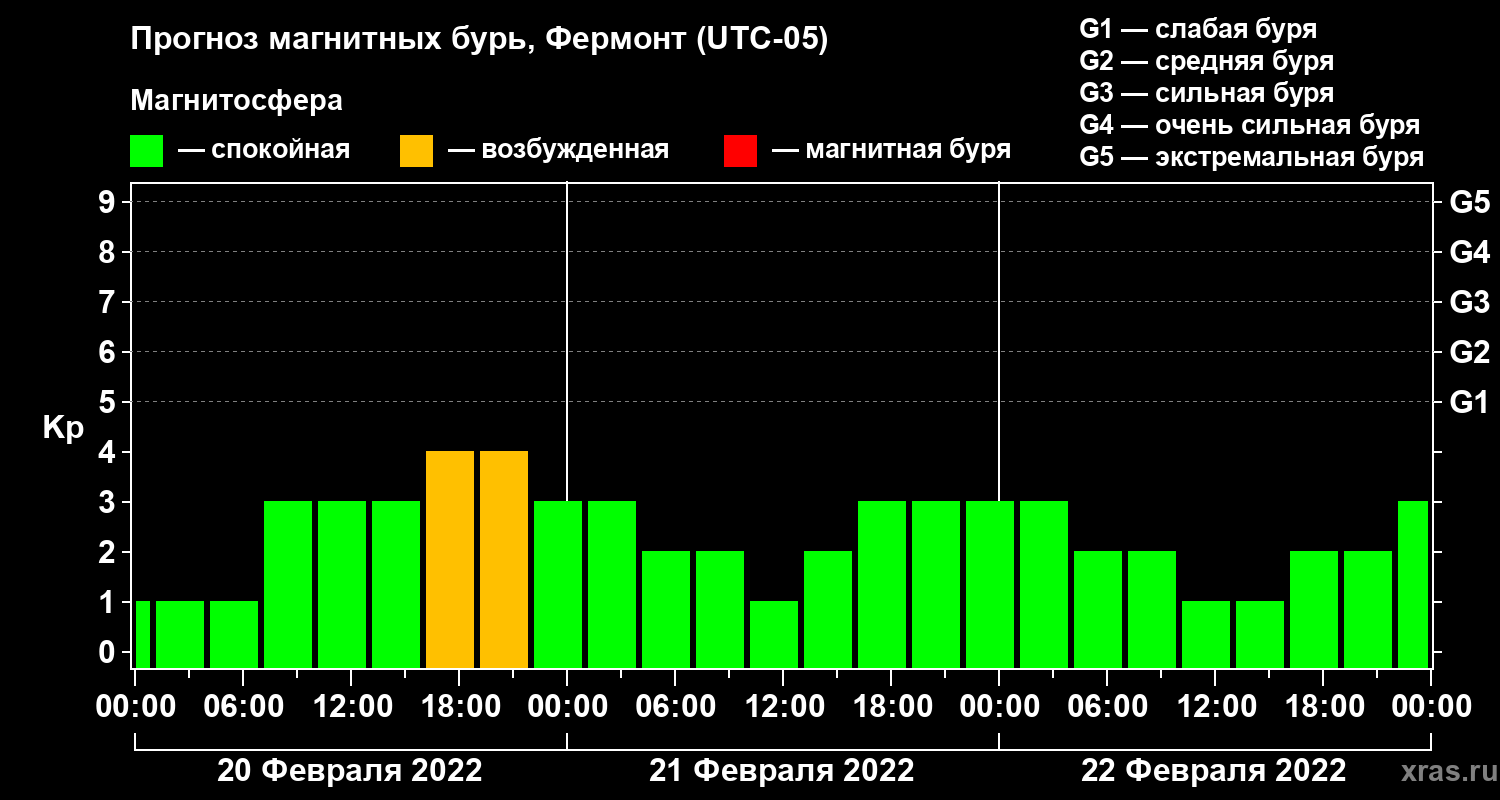 Прогноз магнитных бурь в Фермонте на 20 февраля 2022 года