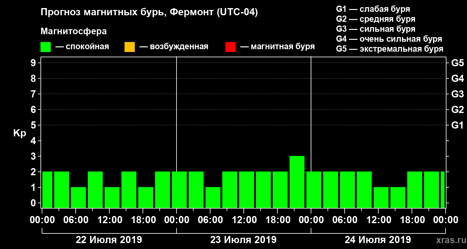 Прогноз магнитных бурь в Фермонте — 22 июля 2019 года