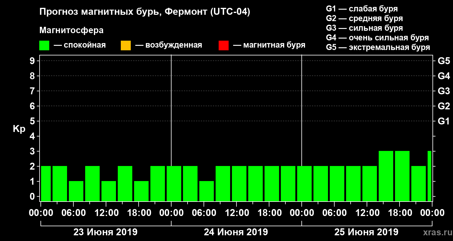 Прогноз магнитных бурь в Фермонте — 23 июня 2019 года