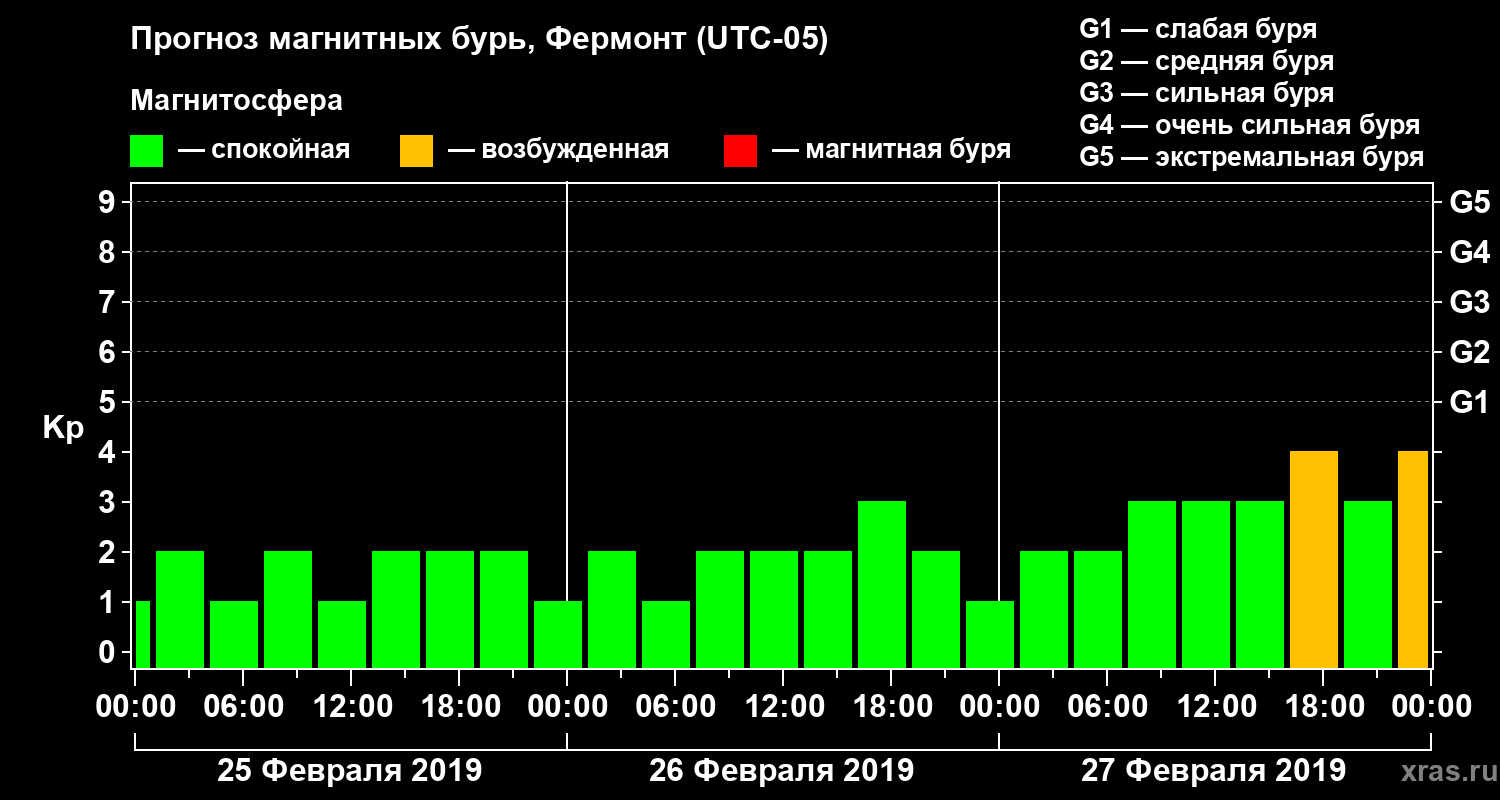 Прогноз магнитных бурь в Фермонте — 25 февраля 2019 года