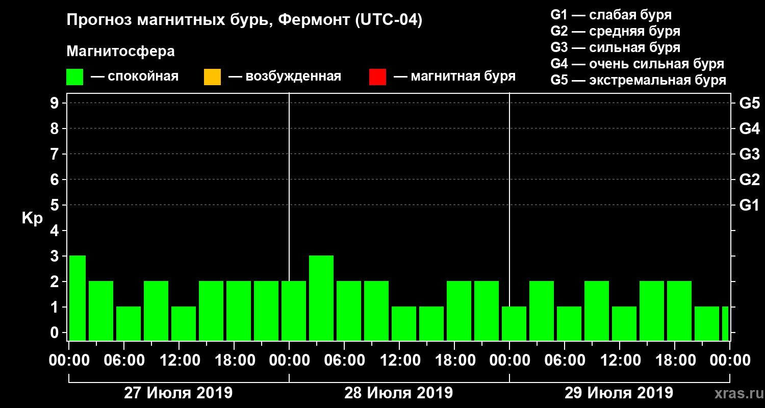 Прогноз магнитных бурь в Фермонте — 27 июля 2019 года