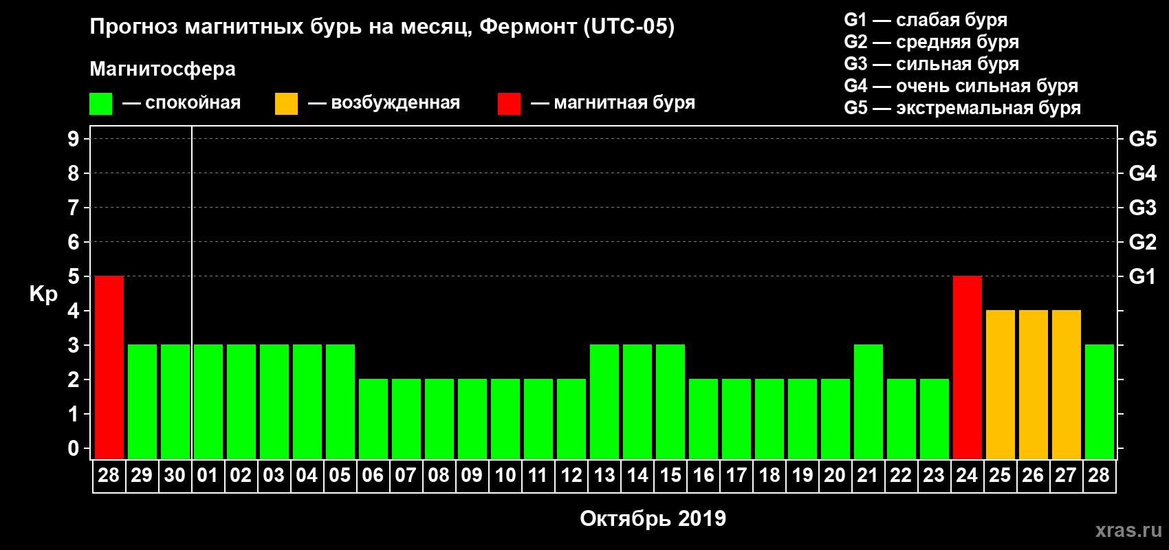 Прогноз магнитных бурь в Фермонте — 28 сентября 2019 года