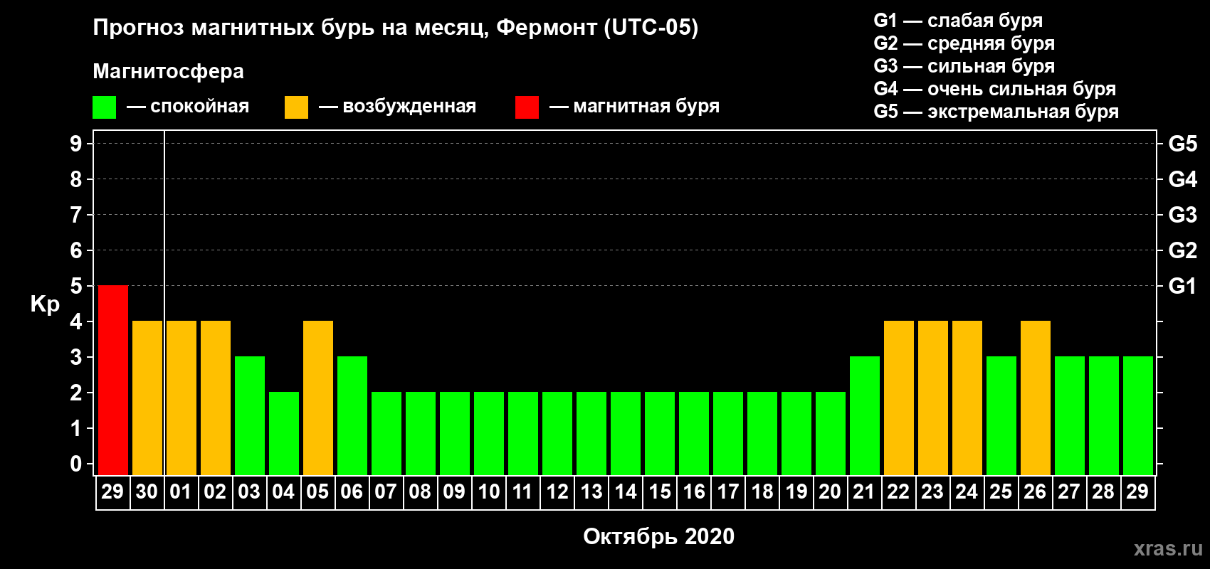 Прогноз магнитных бурь в Фермонте — 29 сентября 2020 года