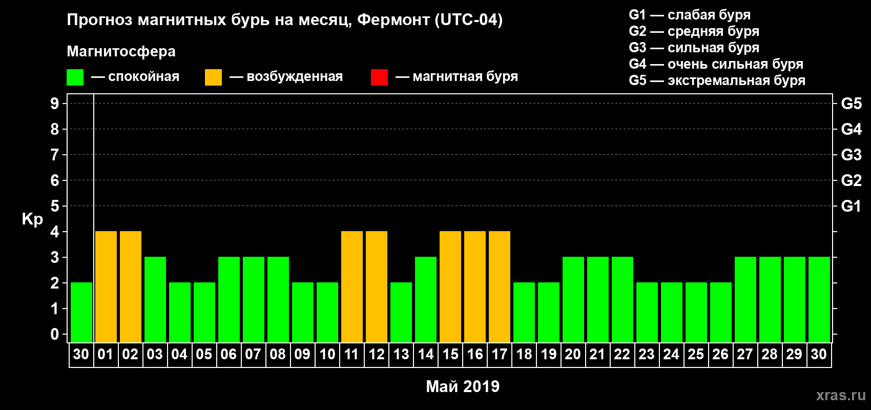 Прогноз магнитных бурь в Фермонте на 30 апреля 2019 года