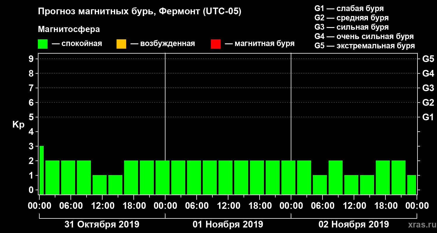 Прогноз магнитных бурь в Фермонте — 31 октября 2019 года