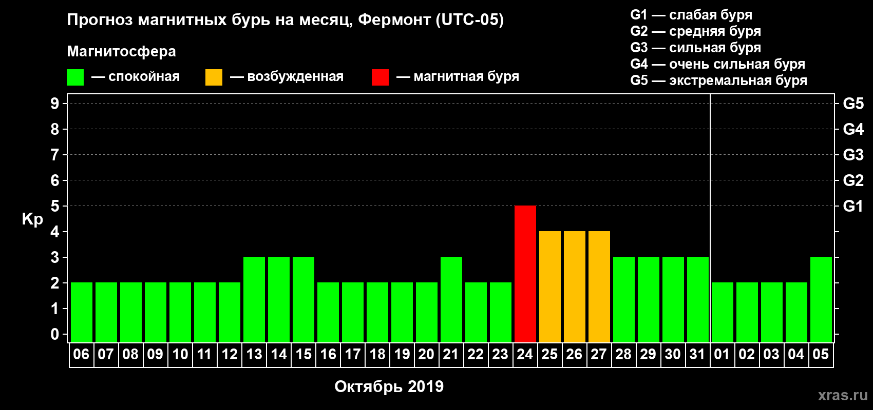 Прогноз магнитных бурь в Фермонте — 6 октября 2019 года