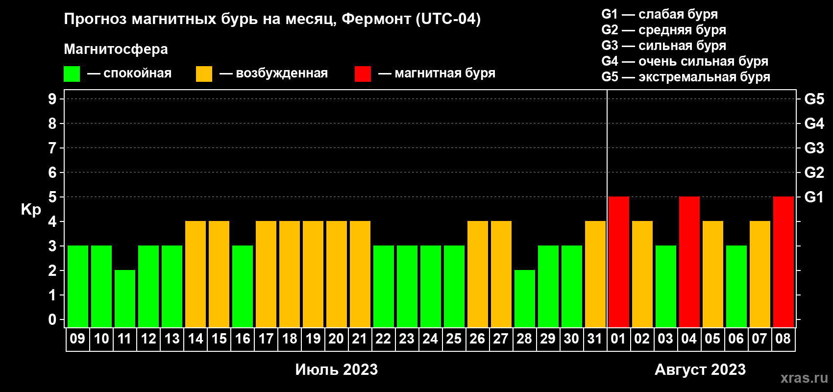 Прогноз магнитных бурь в Фермонте — 9 июля 2023 года