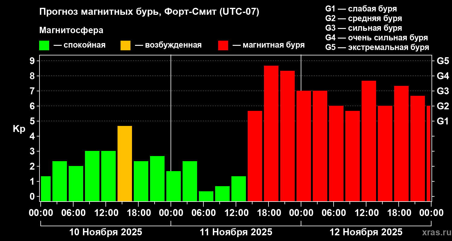 Прогноз магнитных бурь в Форт-Смите — 10 ноября 2025 года