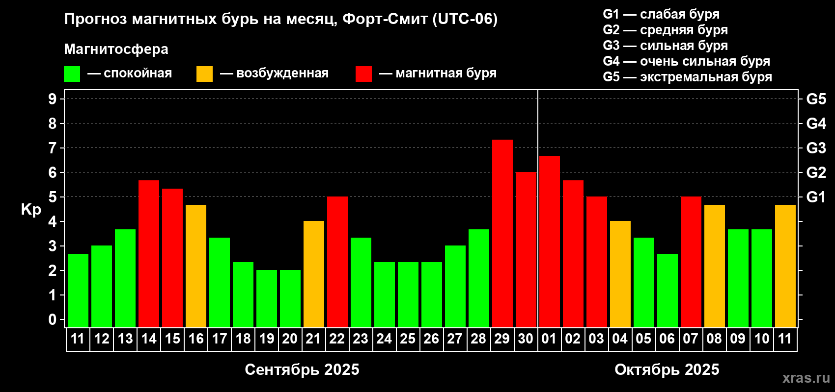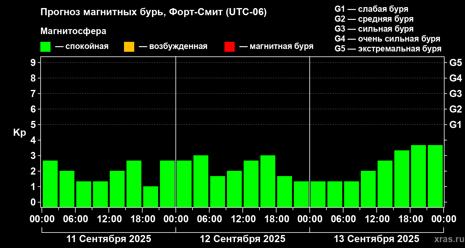Прогноз магнитных бурь в Форт-Смите — 11 сентября 2025 года