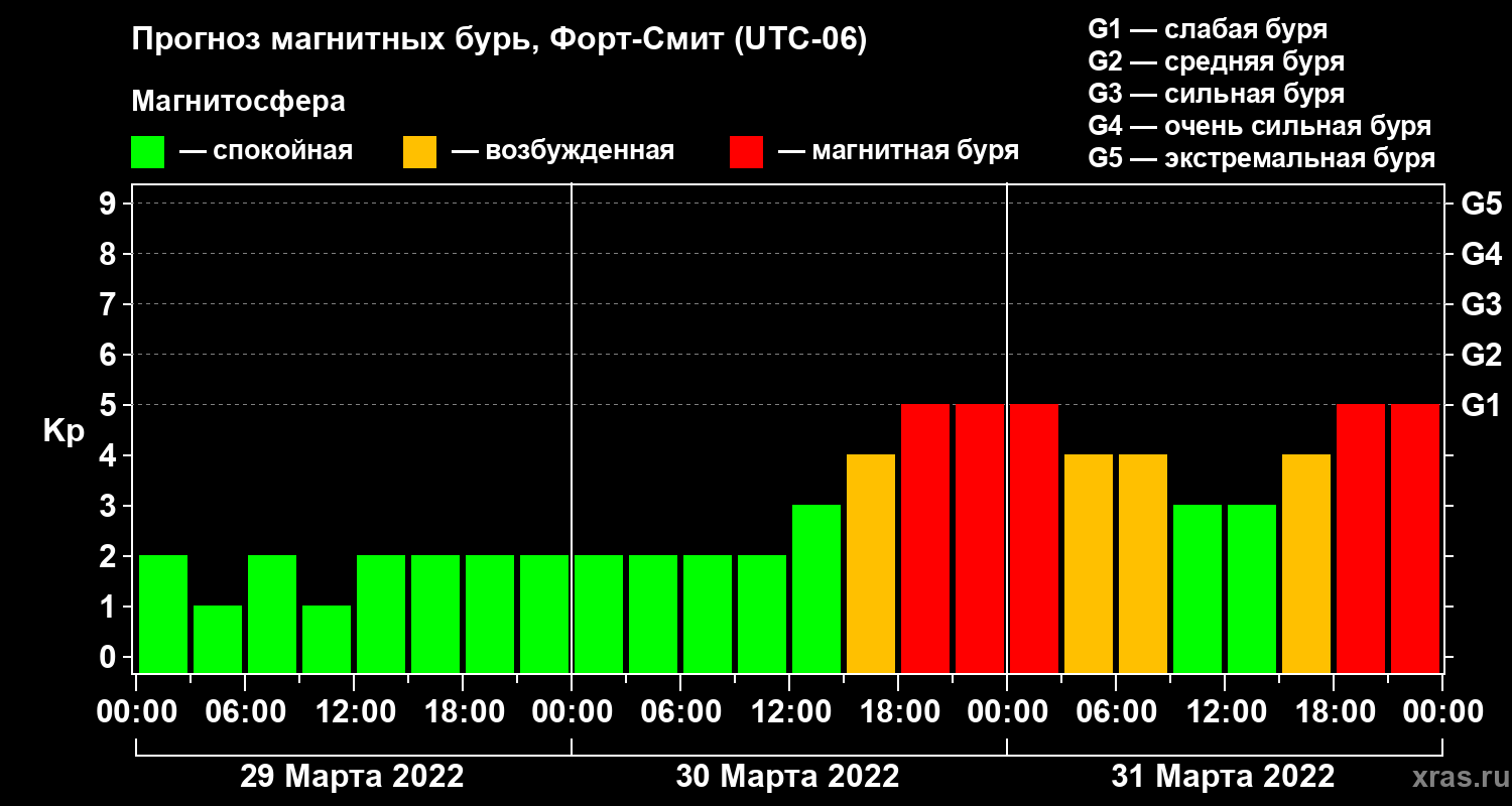 Прогноз магнитных бурь в Форт-Смите на 29 марта 2022 года