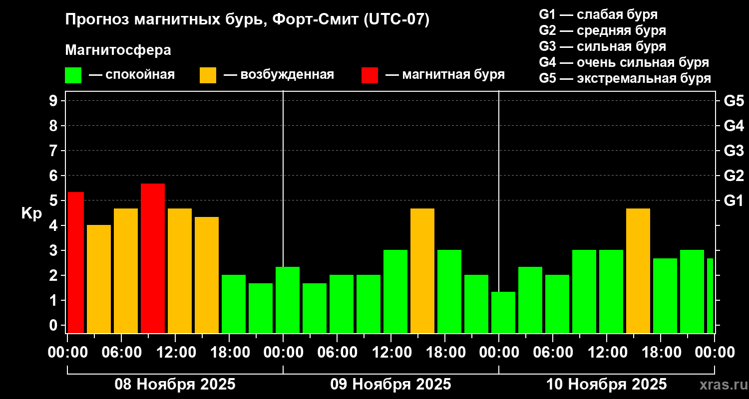 Прогноз магнитных бурь в Форт-Смите — 8 ноября 2025 года