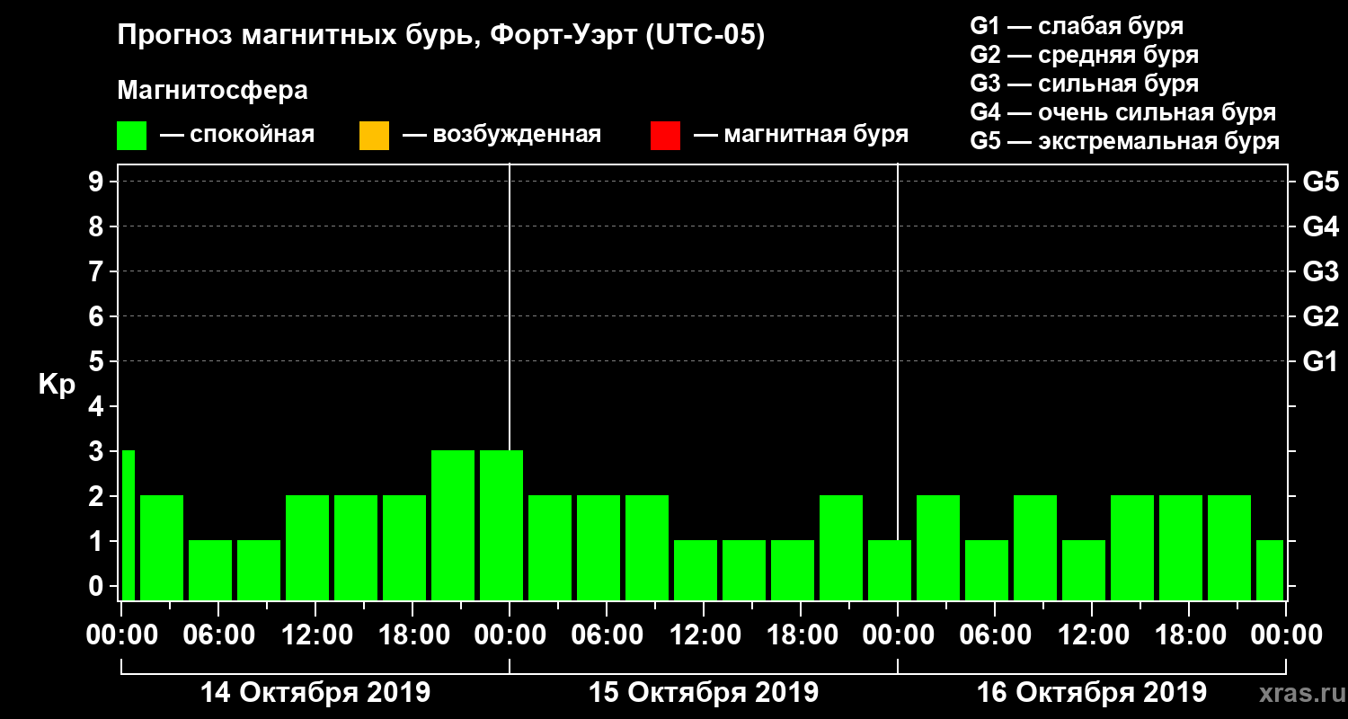 Прогноз магнитных бурь в Форт-Уэрте — 14 октября 2019 года