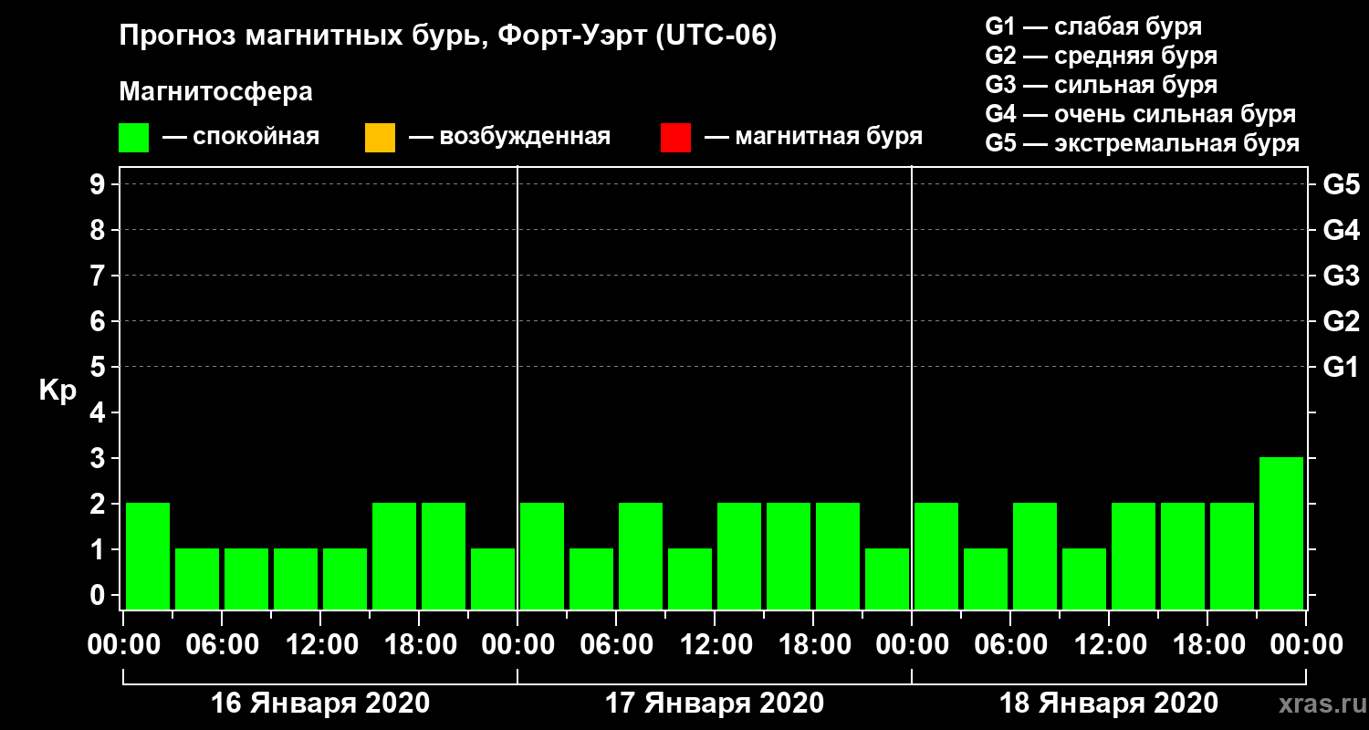 Прогноз магнитных бурь в Форт-Уэрте на 16 января 2020 года